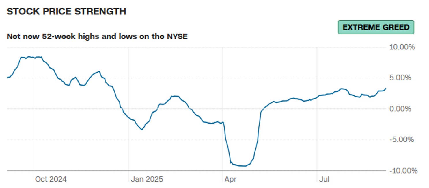 미국 증시에서 최근 1년간 최고가인 주식과 최저가인 주식의 종목수를 비교하여, 최고가가 더 많으면 현재 증시가 활기가 있는 것으로 해석하고, 최저가가 더 많으면 반대로 해석한다. 소수 대형주의 영향으로 나타날 수 있는 증 전체의 착시효과를 줄이기 위해 활용된다.