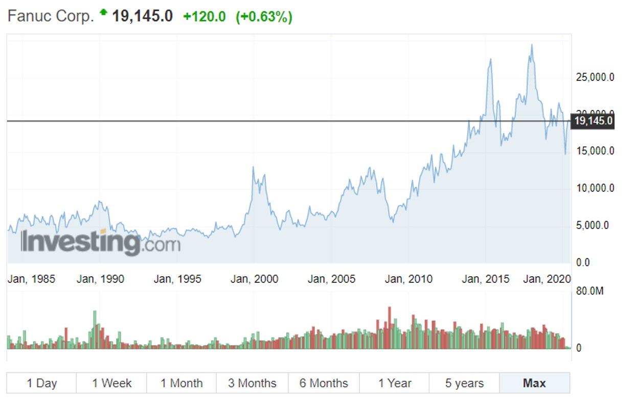 현재, 세계 산업용 로봇 시장 점유율 1위의 일본 화낙(Fanuc)은 지금으로부터 약 50년 전인 1972년, 컴퓨터와 통신장비를 만들던, 후지쓰(Fujitsu)의 자회사로 시작했다. 당시 제조업을 기반으로 눈부시게 성장하던 일본 내에서, 기계 가공에 필수적인 공작기계와 (당시로서는 최첨단 기술이었던) 제조용 로봇 개발에 많은 투자가 이루어졌고, 해당 사업이 흑자로 전환되자마자 모회사로부터 분사하여 현재의 화낙(Fanuc)이 설립되었다고 한다.