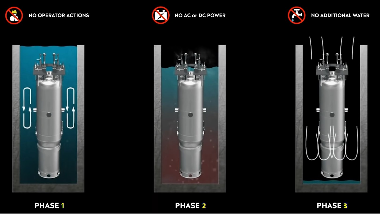 ※ 원전용 PSS (Passive Safety System) 는 원전시설에 모든 장치가 정지한 상태에서도 원전의 안전을 확보할 수 있는 시스템 기술을 말한다. 이해를 위해 가장 쉽게 설명하자면, 만일 원전시설이 비정상적인 이유로 정지하는 경우, 전기가 없어도 작동할 수 있는 기계적인 장치로 감속제를 핵연료봉 안으로 떨어뜨려서 1차적으로 원자로 내부 온도를 낮춰주고, 정상동작시 잘 사용하던 냉각펌프가 멈추면, 전기가 없어도 작동할 수 있는 밸브로 냉각수 경로를 변경하여, 온도차에 의한 자연적인 대류현상 (뜨거운 물이 위로 올라가고, 차가워지면 아래로 내려오는 현상) 을 활용한 비상냉각을 실시하는 방식이다.