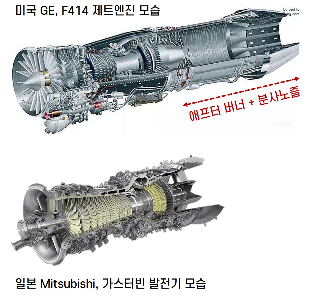 ※ 한국이 제트엔진을 자체개발 한다면, 처음부터 군용 제트엔진 개발을 하는 성급한 방법보다는 민간기업의 가스터빈 국산화부터 점진적으로 시간을 두고 진행하는 것이 바람직해 보인다. 사실 로켓엔진이든 제트엔진이든 이미 60~70년이 넘은 고전적 기술이고, 그동안 혁신적인 기술진보도 크지 않았다. 경량화와 내구성 향상을 위한 소재개발, 속도 향상을 위한 추가연소 메커니즘인 애프터버너 정도이다. 그나마 새로운 시도를 하고 있는 민간항공기용 제트엔진, 미국 Pratt & Whitney 의 GTF (Geared TurboFan) 엔진 등의 신기술을 참고하여 차세대 엔진개발에 관심을 갖고 장기적인 기술노하우를 확보하는 것이 좋을 것 같다. 참고로 대한한공은 Pratt & Whitney 의 GTF 엔진 정비/수리 협력기관으로 이미 기술협력을 하고 있다고 한다. 그리고 두산에너빌리티 (구 두산중공업) 가 최근 가스터빈 시제품을 만들면서, 관련 기술의 국산화를 시도하고 있지만, 이 기술은 두산이 2009년 9월 인수한 체코의 스코다 파워 (Skoda Power) 의 기술을 그대로 가져다 활용한 것이지 아직 완전한 기술 내제화는 갈길이 멀다고 한다.
