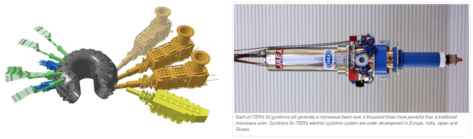 2) 가열 장치 (Heating system: 유럽, 인도, 일본 등) : 장치 바깥쪽에 설치되며, 핵융합을 위한 연료를 가열하여 플라즈마 상태로 만들어 주는 장치. 상세 설명은 위에서 다룸.