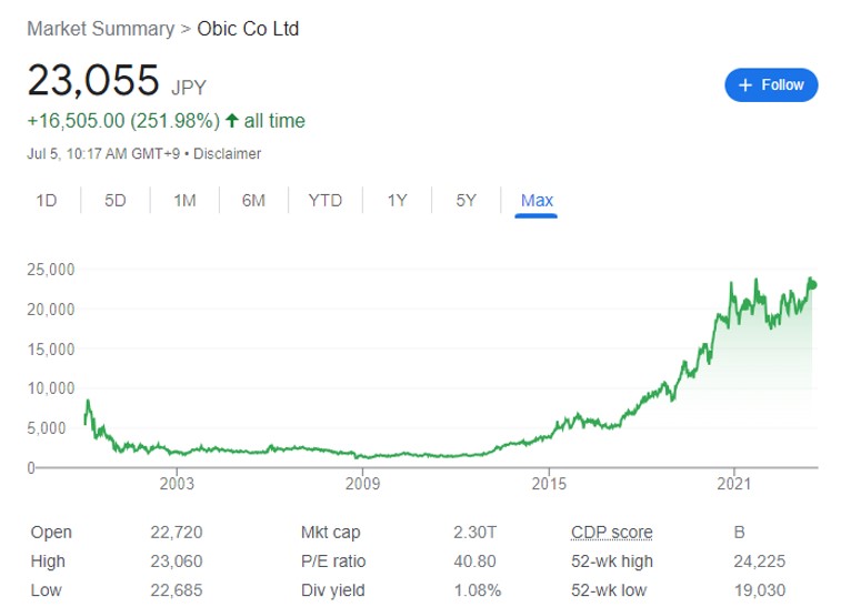 일본의 공장 및 사무 자동화 전문 SI (system integration. 시스템 통합) 업체. 자체 ERP (기업의 모든 자원을 통합 관리하는 시스템) 소프트웨어를 일본 고도성장기 부터 공급하여, 한번 익숙해진 시스템과 업무 매뉴얼에 따라, 정해진 일을 하는 일본인의 특성상, 적어도 일본에서는 계속 먹고살 수 있는 기업으로 보인다. 최근 ERP 에 클라우드 기술 (미국 Microsoft 클라우드 활용) 적용과 이를 통한 빅데이터 처리 및 인공지능 기술이 접목되고 있다고는 하지만, 이 회사가 왜 이 지수에 포함되어 있는지는 잘 모르겠다. 일본 소프트웨어 기업 중 매출 순위는 3위이지만, 일본 내에서도 아는 사람이 별로 없는 기업. 매출은 모두 일본 국내에서만 발생하고 있지만, 현재까지 10년 이상 한번도 매출이 감소하지 않고, 꾸준히 계속 증가했다. 그나마 일본 내에서 알려진 것은 졸업예정자만 채용하고, 경력자는 뽑지 않는 회사라고 한다.