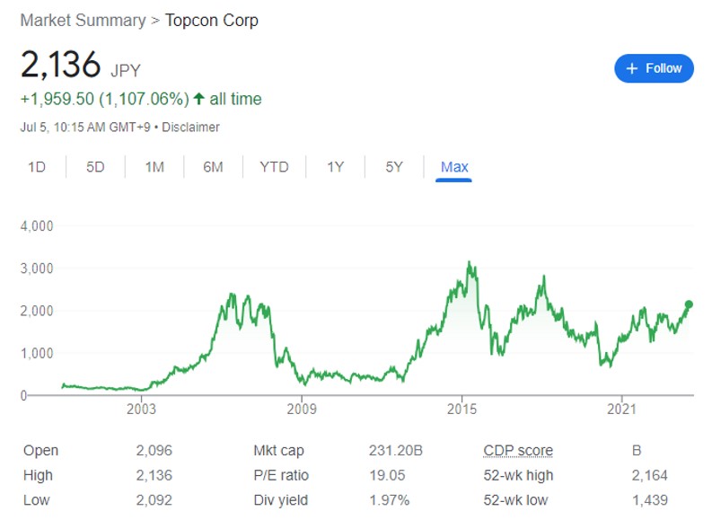 일본의 광학기기 제조업체. 고정밀 광학센서와 여기에 들어가는 렌즈, 신호처리 시스템 등을 만드는데, 매출이 높은 제품은 의료용 디지털 현미경, 안과수술용 정밀 광학장치, 건설용 거리/높이/면적 측정 시스템 등이다. 로봇용으로는 고정밀 위치측정 센서 등이 있다고 한다. 로봇의 눈에 해당하는 거의 모든 기술을 보유한 업체로 추정된다.