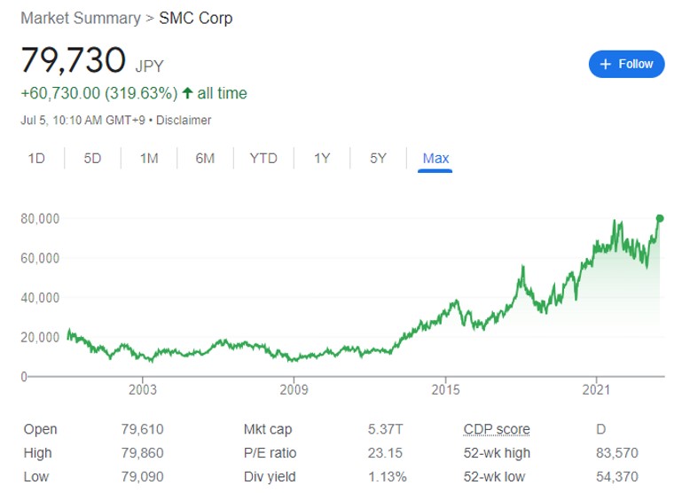 향후 순위 변동이 있다면 업데이트 하겠다. 일반적으로 일본 주가는 미국의 유사 분야의 주식이나 지수에 비해 변동성이 크지 않지만, 주가 차트를 보면 알 수 있듯이 지수에 포함된 업체들은 주가가 전반적으로는 우상향하는 경향이 있다.