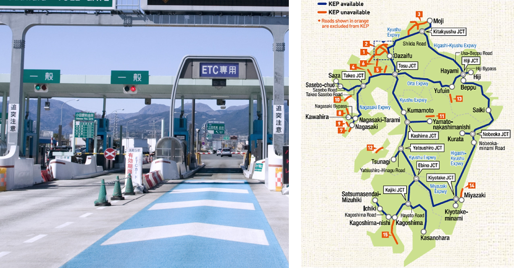 큐슈 지역을 자동차로 여행할 때는 KEP (Kyushu Expressway Pass) 도 ETC 와 함께 포함시키면 좋다. 일종의 기간제 정액 패스인데, 큐슈지역 대부분의 고속도로 구간을 사용 빈도와 거리 상관없이 지정된 기간 동안 정액으로 이용할 수 있다. 필자의 경우 차량 반납 시, 정산해 보니 50% 가까이 통행료를 절약할 수 있었다.