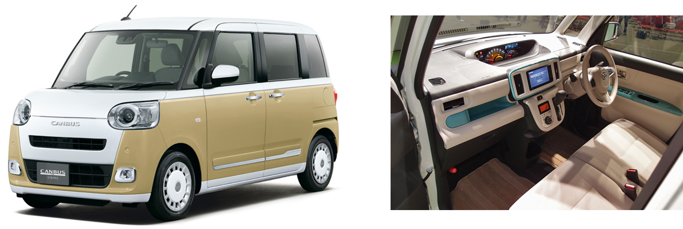 돈이 많으면, 더 큰 차를 빌렸겠지만, 현지 지인 말에 따르면, 일본은 경차 왕국이라 이 정도면 충분하다고 해서, 마침 할인행사를 하고 있는 후쿠오카시의 Budget 에서 경차를 렌트했다. 업체에서 준 차는, 아직 5천 km 도 달리지 않은 신차급 다이하츠 무브 Canbus. 다이하츠는 한국에서는 잘 모르는 업체지만, 일본에서는 경차 판매 2위이고, 독특한 디자인으로 유명한 모양이다. Toyota 자동차의 자회사 중 하나.