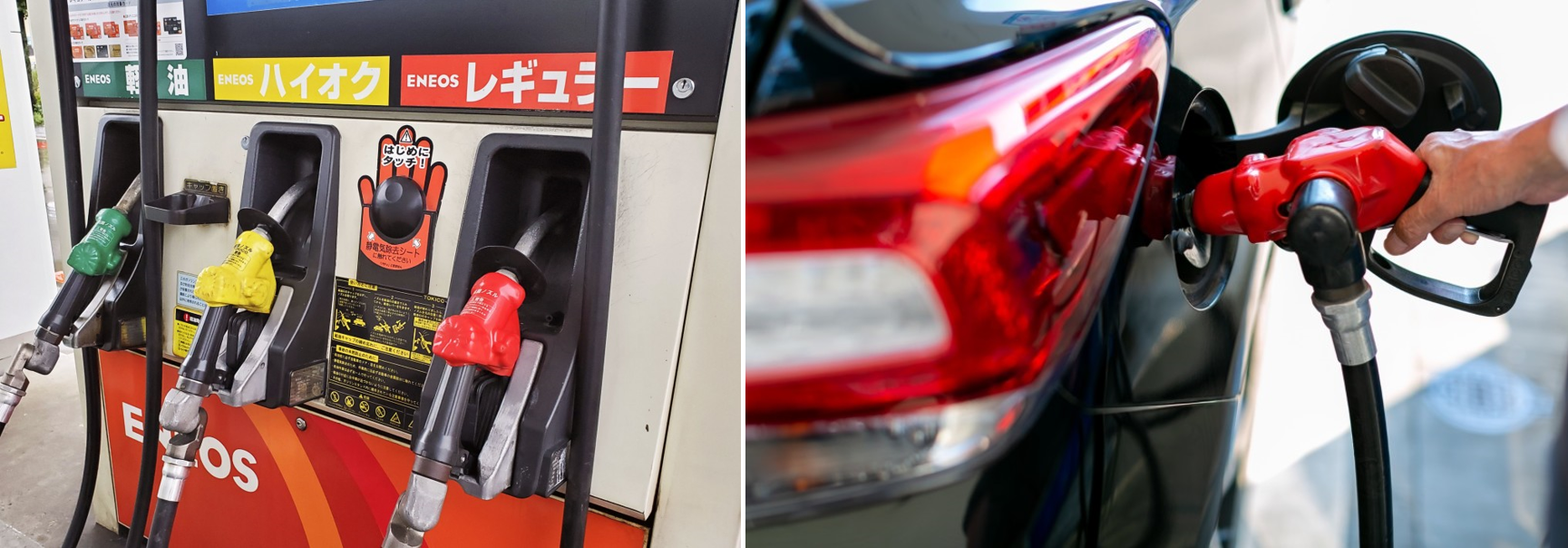 일본은 주유소 유종별 가격이 전반적으로 한국보다 약간 저렴하다. 유류세가 한국보다 높지 않아서인데, 평균이 그렇다는 것이지 일본도 지역별로 주유소별로 가격차이가 있어서 잘 선택해야 한다. 물론 셀프 주유소가 가장 저렴하고, 일본어를 못하면 불친절한 주유소도 있으니, 직원이 넣어주는 곳보다 셀프 주유소를 추천한다. 한국은 가솔린이 노란색 주유기 이지만, 일본은 레귤러라고 부르고 빨간색 주유기를 사용하며, 주유 중에는 주유기 레버를 계속 당기고 있어야 한다.