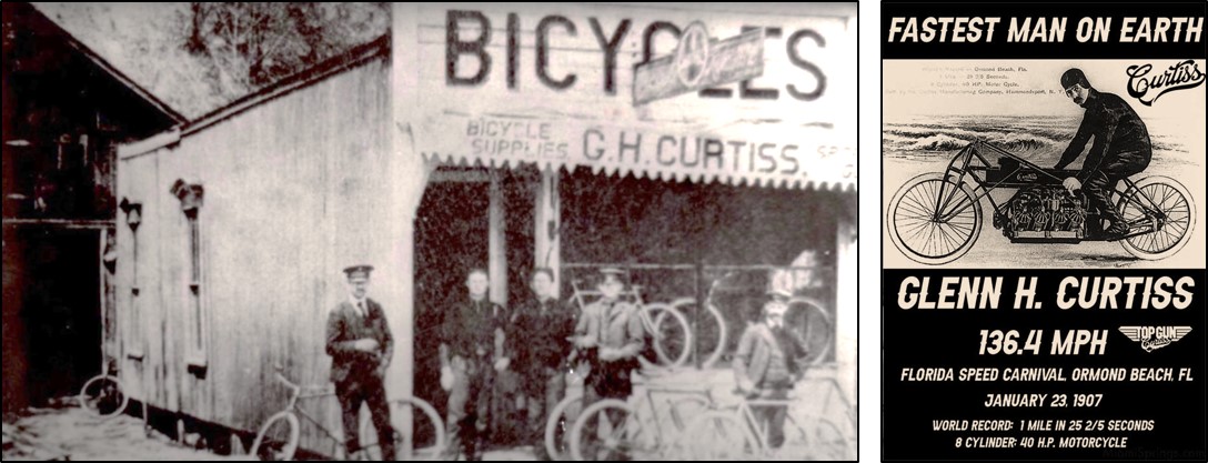 이 글의 주인공, 글렌 커티스(Glenn H. Curtiss)는 1878년 5월, 미국 동부에 있는 뉴욕주 서쪽, 해몬즈포트 (Hammondsport) 에서 태어났다. 그의 아버지는 당시 가장 많이 사용되었던 교통수단인, 마차의 여러 가지 기구를 만드는 기계공이었는데, 커티스가 4살 때 사망한다. 홀어머니와 할머니 밑에서 자란 어린 커티스는 학교는 중학교 정도만 다니고, 10대 중반에 지금의 Kodak, 당시 회사명으로는 'Eastman Dry Plate and Film Company' 에 들어가 카메라 필름 생산용 기계장치를 만들었다고 한다. 참고로 커티스가 Kodak 에서 근무하던 1890년대 중후반은 세계 영화산업의 태동기로, 미국에서는 무성영화가 막 세상에 등장하던 시기다.