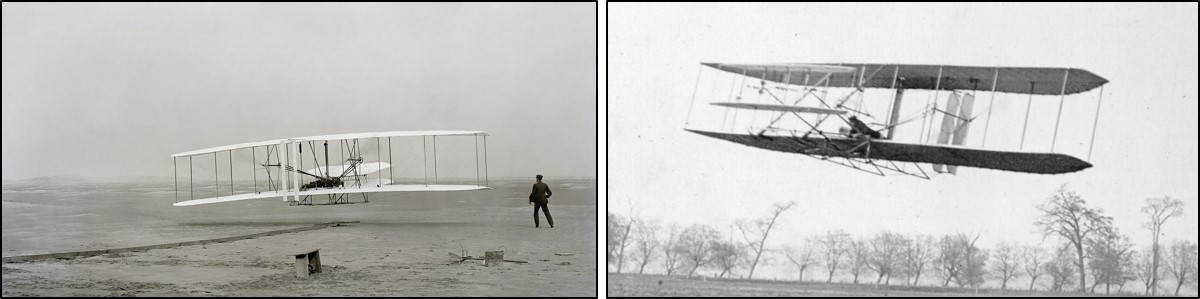 1903년 12월, 라이트 형제의 플라이어(Flyer) 1호는 12초간 약 37미터를 비행하는 데 성공한다. 이전까지 여러 비행체가 있었지만, 글라이더나 열기구에 선풍기 같은 동력기를 장착하는 수준이었다. 그들의 업적은 지금의 항공기와 유사한 공기역학적 상승, 하강, 좌우회전 조절이 가능한 날개구조, 이를 제어할 수 있는 스틱형 3차원 컨트롤러 그리고 비행기용 모터 추진기라고 한다.