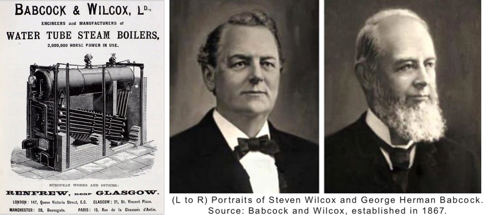 당시 B&W 의 스팀 보일러는 동시대의 발명가 토마스 에디슨이 백열전구에 공급할 전기를 만드는 발전기로도 사용되었다. B&W 의 창업 아이템은 사업적으로 크게 성공한다.